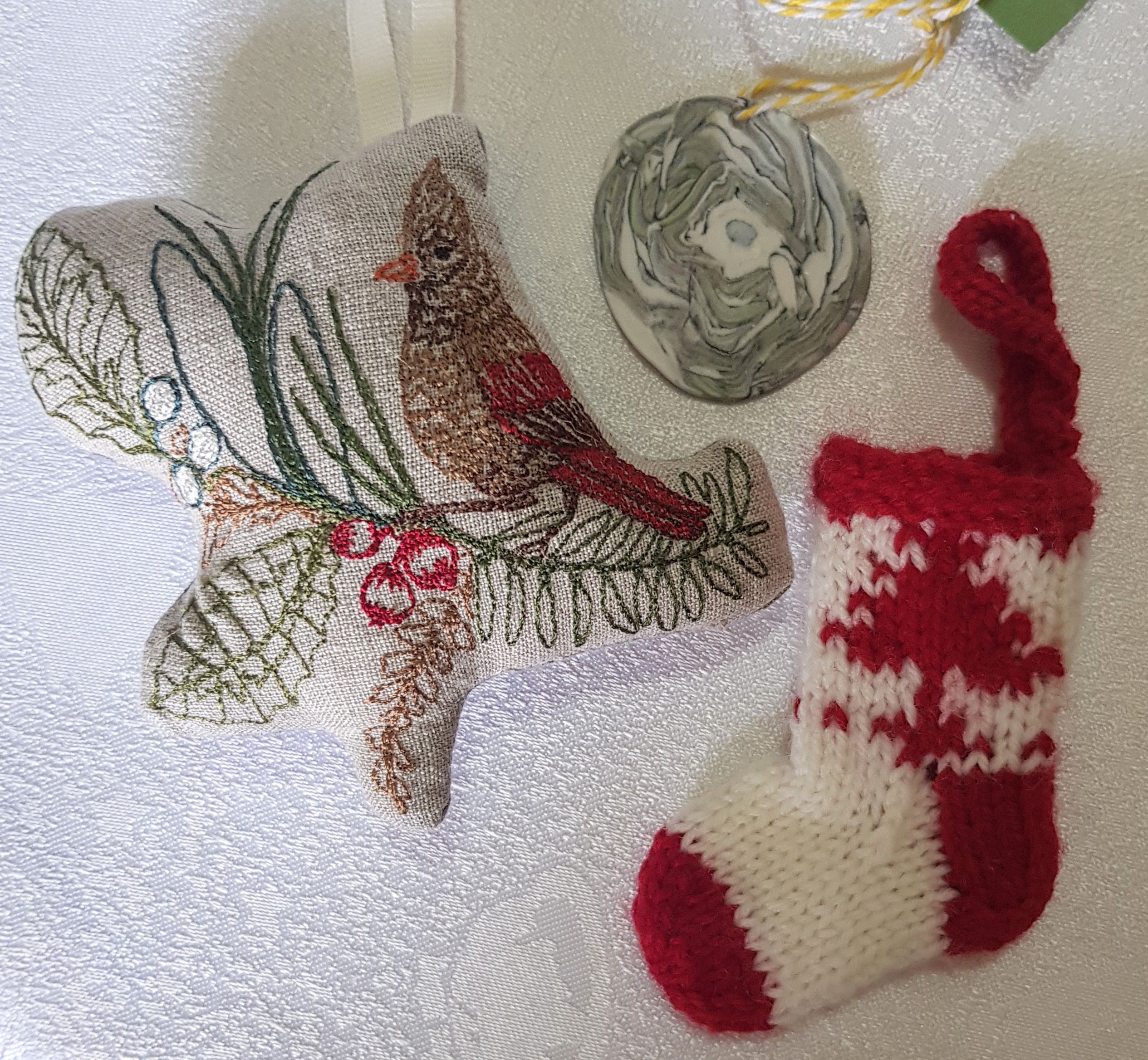 We exchanged Secret Santa Gifts and I received this amazing cross stitch and pin cushion from Audrey. All the gifts were lovely though I didn't get pictures of them all.