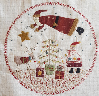 I worked on this Lynette Anderson stitchery and also did some knitting. Below are a few goodies that I bought while I was away.