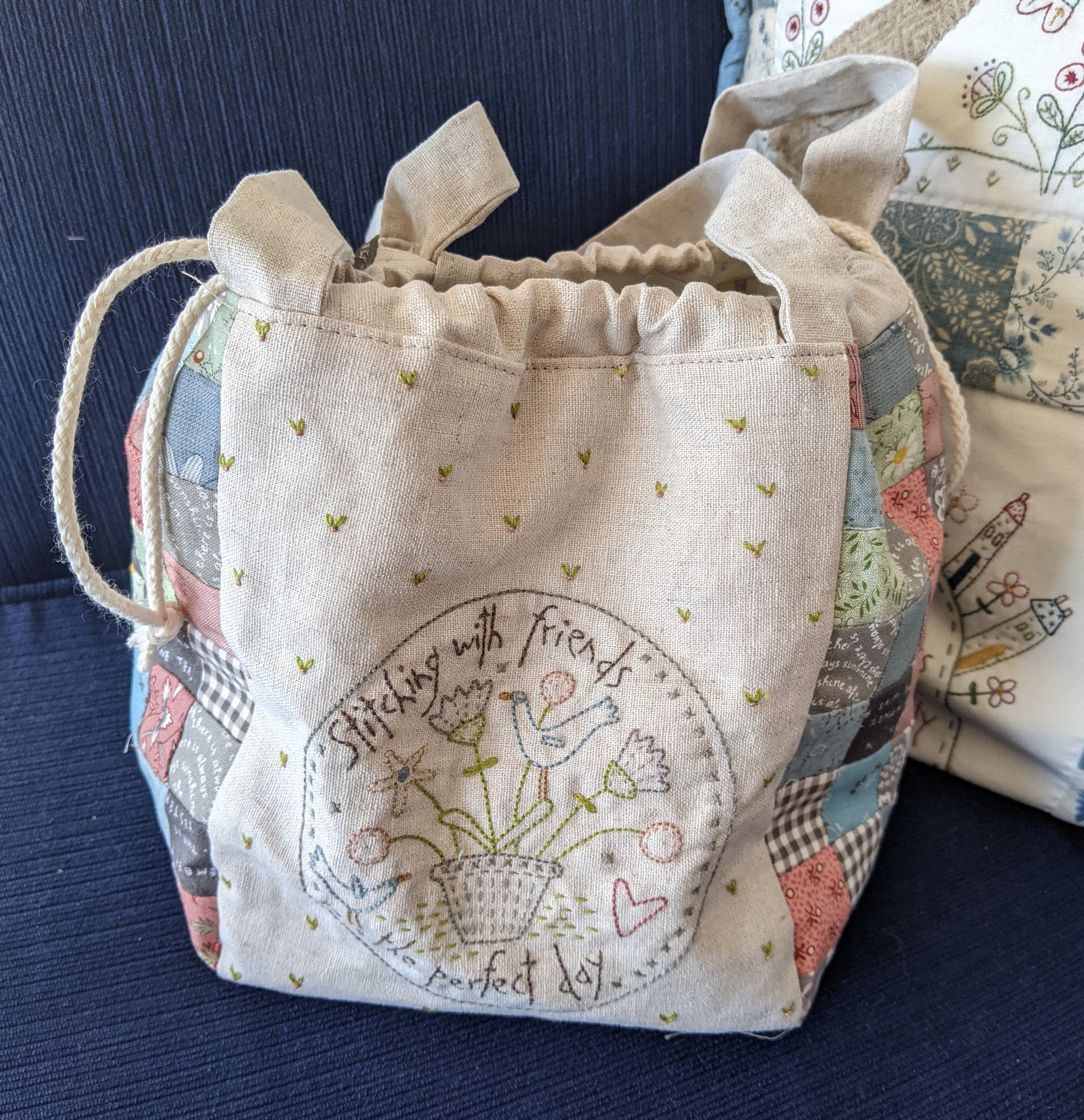 Lovely to see Barbara's lovely finishes at stitching on Wednesday night. She has made this very cute bag and the Merry part of the Rosalie Dekker bunting.